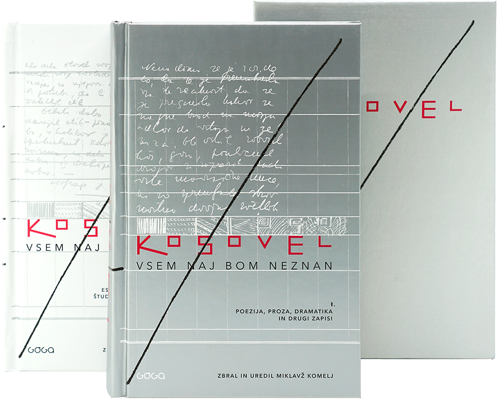 Kosovel · Vsem naj bom neznan knjiga / book Založba Goga, 2019 najbolje oblikovana knjiga 2019 (leposlovje, proza), Slovenski knjižni sejem 2019 priznanje za odlično slovensko oblikovanje, Brumen 2019
